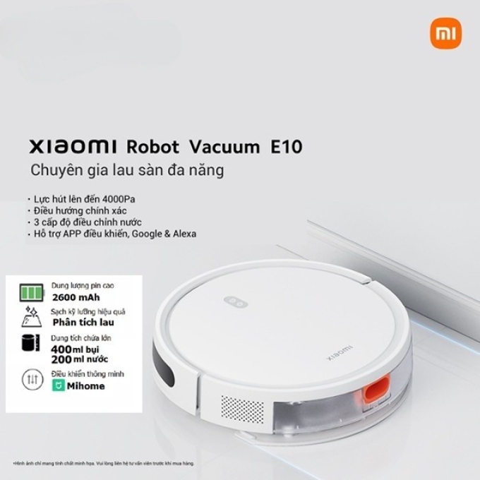 Robot hút bụi Xiaomi Vacuum E10 có khả năng vừa hút bụi, vừa lau nhà giúp dọn dẹp hiệu quả hơn.